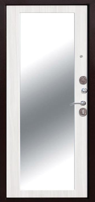 Сдержанный белый цвет придаёт модели лёгкость и визуальную чистоту, а зеркало внутри делает её особенно удобной для городских квартир и офисов, где важна каждая деталь интерьера. Белая входная дверь в квартиру с зеркалом №50 сочетает в себе функциональность и надёжность: прочный стальной каркас из профильной трубы и лист металла толщиной 2 мм обеспечивает защиту, рёбра жёсткости усиливают конструкцию, а два контура уплотнителей помогают снизить проникновение сквозняков и шума. Отделка из МДФ-накладок устойчива к царапинам и не теряет аккуратного вида даже при активной эксплуатации. Зеркальная вставка экономит пространство и делает коридор светлее, а наличие двух замков — сувальдного Просам и цилиндрового Мосрентген — обеспечивает дополнительный уровень безопасности. Белая входная дверь в квартиру с зеркалом №50 от производителя: быстрое изготовление и монтаж в Пересвете, индивидуальные размеры, широкий выбор материалов и фурнитуры, официальная гарантия до 10 лет.