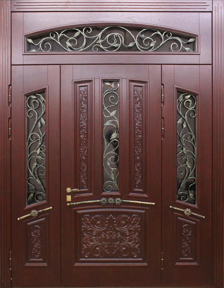 Двухстворчатая дверь со вставками и ковкой №2
